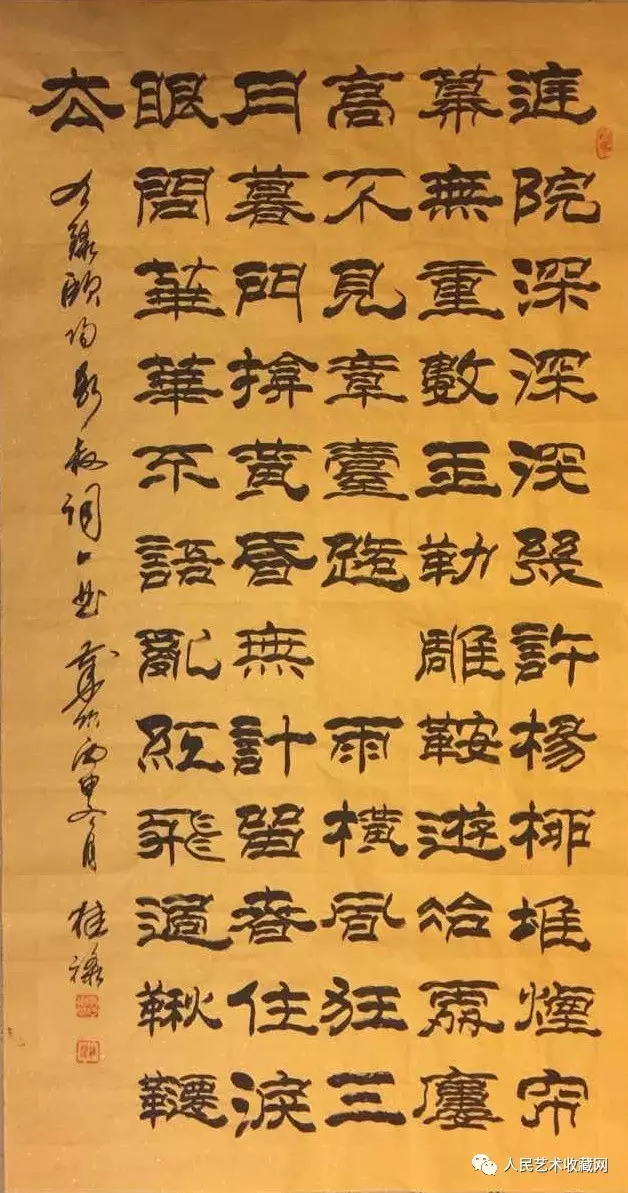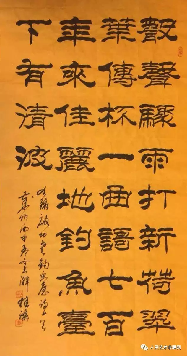 周桂禄,字顺祥,号小二,斋号师竹堂,出生天津宁河,中共党员,研究生学历,高级职业经理人。中国旅游饭店业星评员,中国饭店协会高级评委,中国食文化编委会高级编委,《健康中国》编委会高级顾问。现就职于北京首都机场集团公司所属酒店业。作者自幼酷爱书法艺术,善攻隶书、楷书、行草等书体。早临张迁碑、乙英碑、颜真卿楷书、孙过庭书谱、怀素小草等。近习林散之、刘炳森、李力生等大家,作品深受业界喜爱。曾应邀赴美国、加拿大、日本、韩国、及欧洲、台湾、香港等国家和地区进行文化交流活动。其作品曾在国内多家场馆展出并被收藏。作品先后编入各种集册近百部。现任中国榜书艺术研究会副主席,中外民间文化艺术促进会副会长,中国长城书画协会常务理事,中国书画艺术科学院理事,北京市书协会员等业内职务。